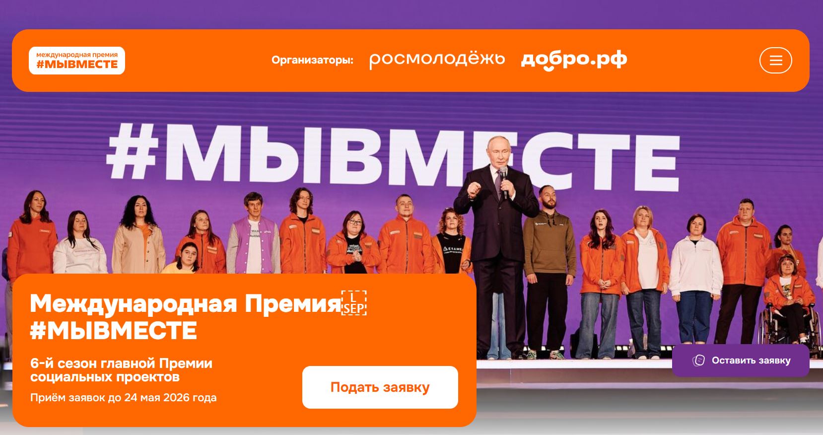 Уполномоченный по правам ребёнка Оксана Хлякина приглашает к участию в Международной Премии #МЫВМЕСТЕ