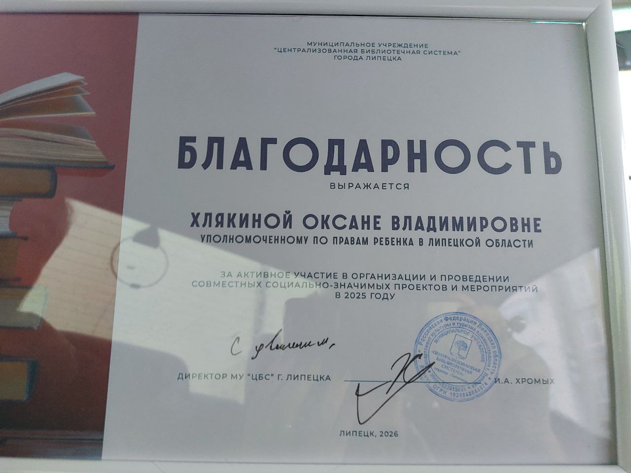 28.01.2026 года на публичном отчете библиотечной системы города Липецка Оксана Хлякина имела возможность ознакомиться с достижениями и развитием библиотечного обслуживания для подрастающего поколения, направленного на благо детей и молодежи.