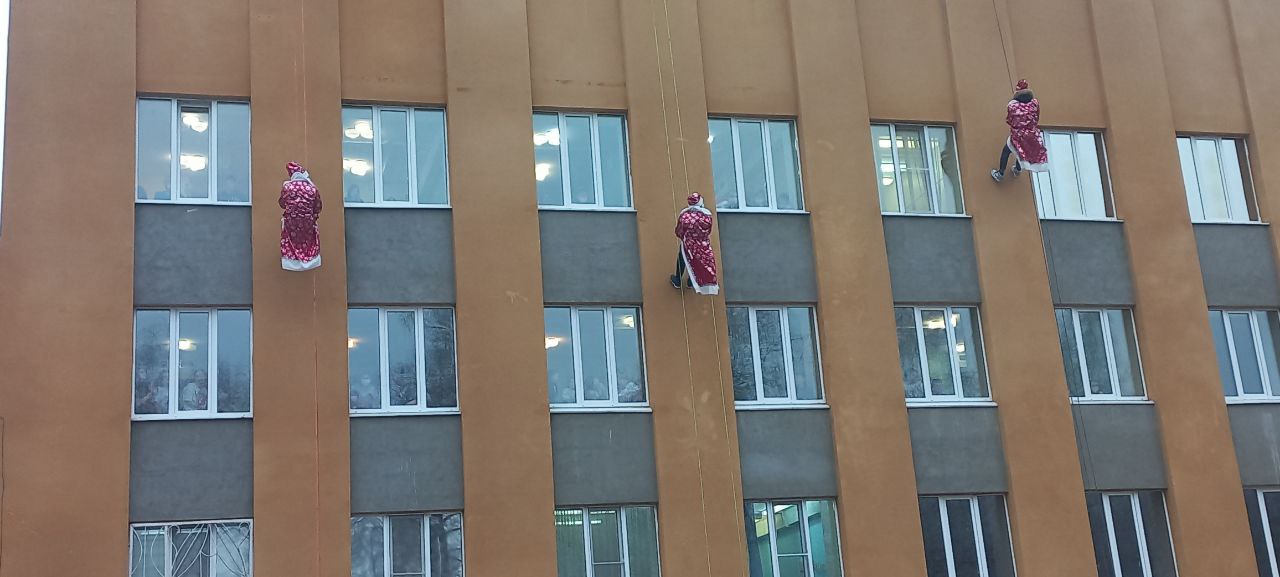 Новогодние поздравления и подарки от Дедов Морозов и аппарата правозащитника получили около 200 детей. Развлекательная программа была очень насыщенной и праздничной. Добровольцы Всероссийского студенческого корпуса спасателей в костюмах Деда Мороза при помощи альпинистского снаряжения спустились с крыши и поздравили ребят.