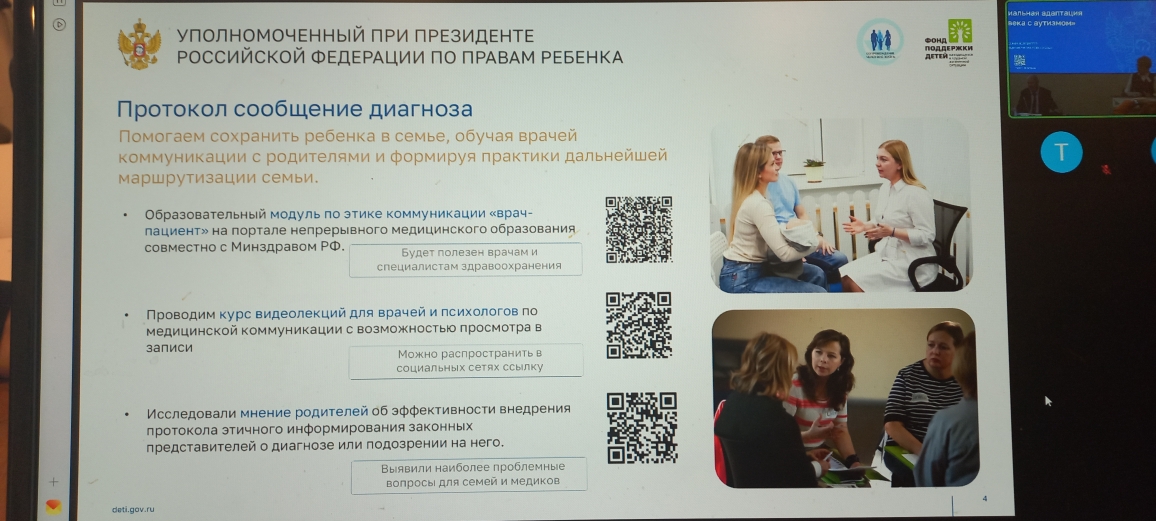 «Объединение усилий профессионального сообщества, представителей общественных и родительских организаций, государственных структур всех уровней позволит создать условия для развития, обучения и полноценной жизни в современном обществе детей и молодежи с РАС и другими нарушениями развития в ментальной сфере», - прокомментировала детский правозащитник Оксана Хлякина.